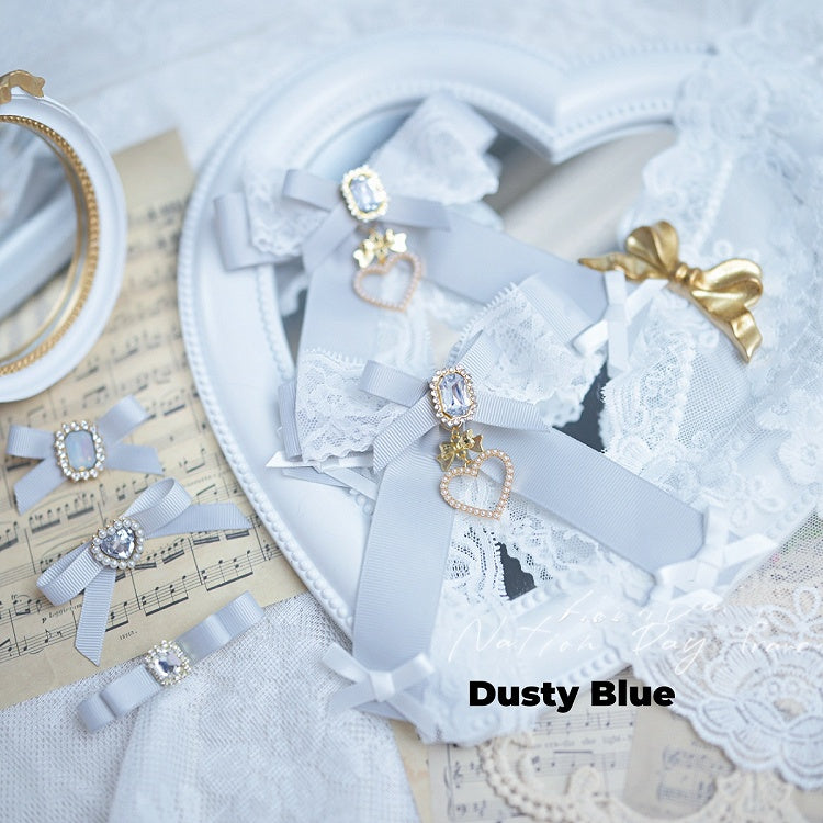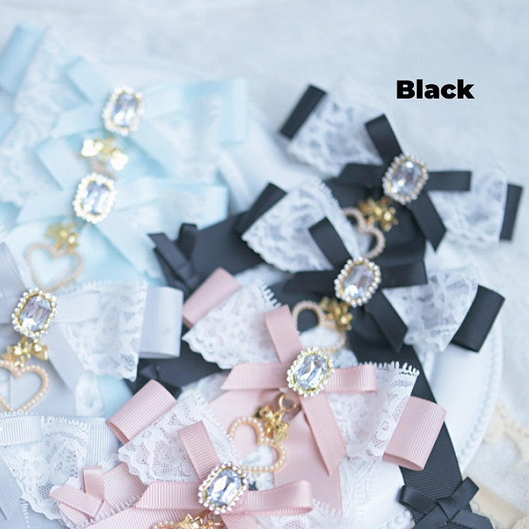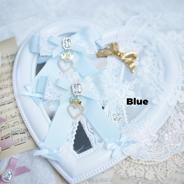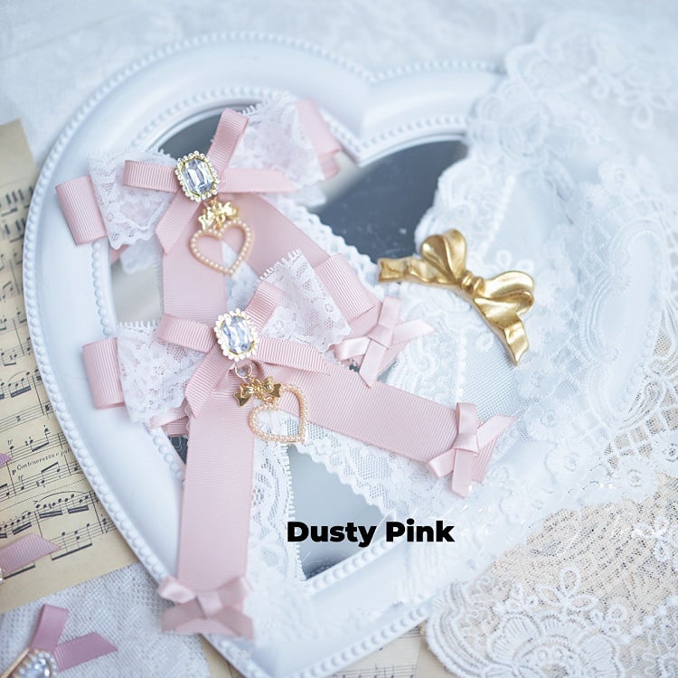 ダスティブルー/ダスティピンク/ブルー/ブラック ビーズハートチャーム ジライケイ レースボウ ヘアクリップ