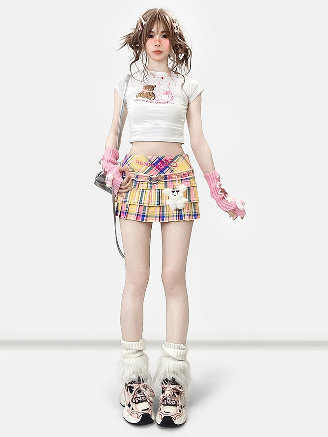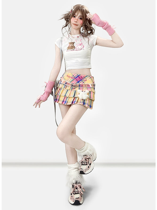 ホワイト Y2K レター ウサギとクマのプリント T シャツ