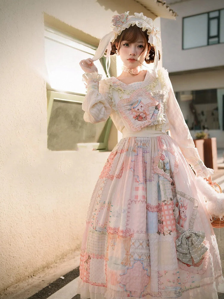 ピンクと白のオールドスクールロリータファッションドレス、蝶結びディテール、ロリータJSKセット通常価格 $71.49から通常価格 $71.49から セール価格単価 / あたり