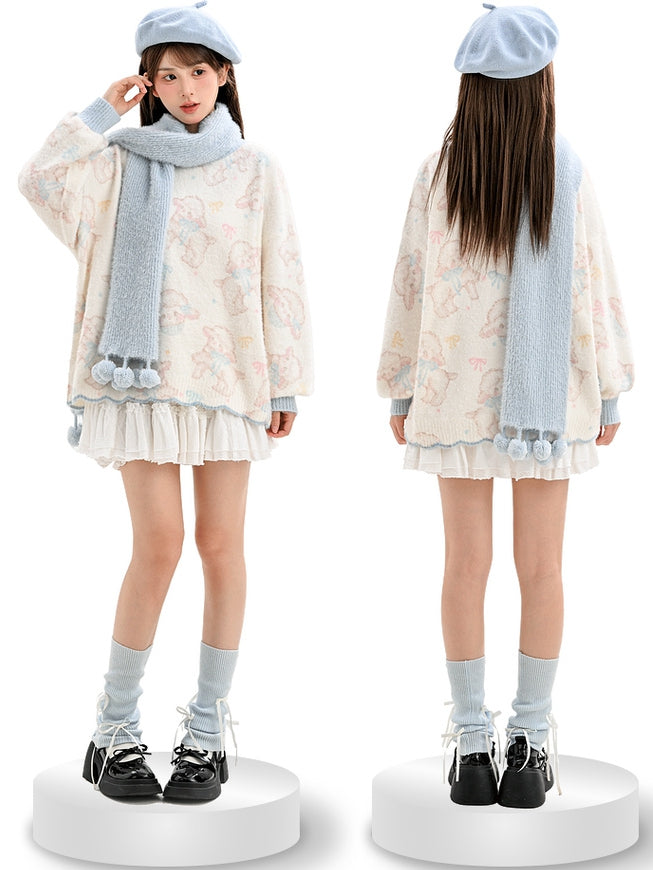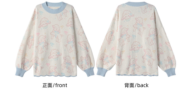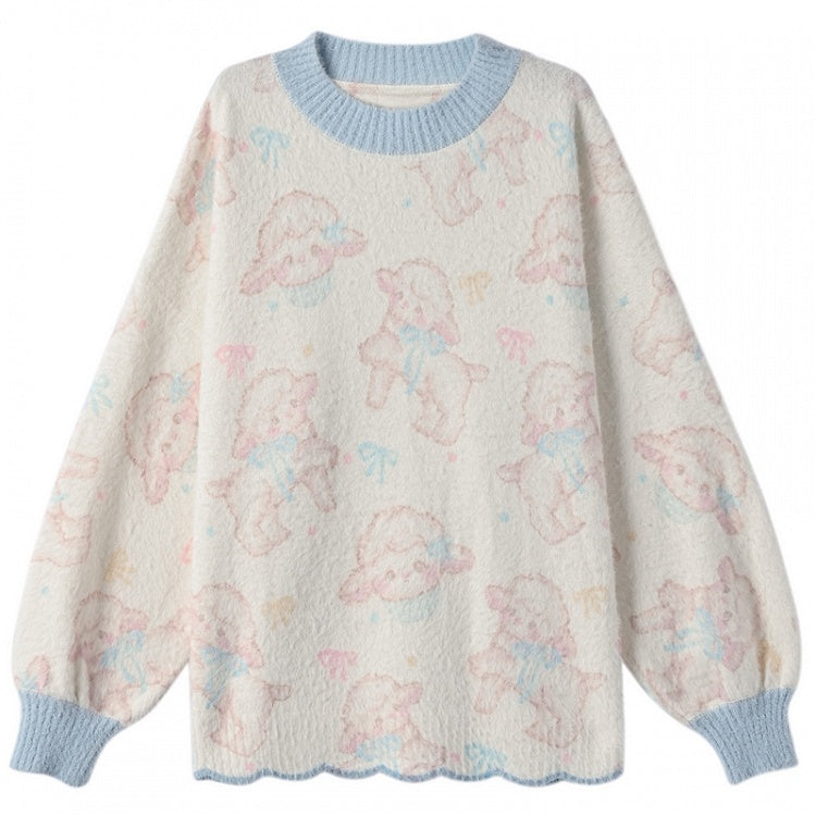 スカラップエッジトリムのベージュのキュートなラム柄セーター