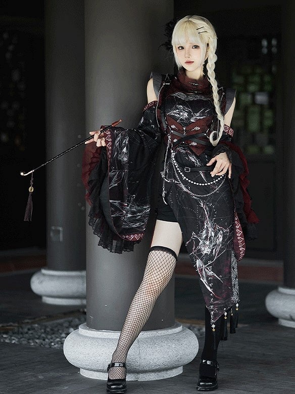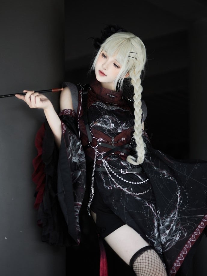黒と白のオールドスクールロリータファッションドレス蝶結びロリータJSKセット