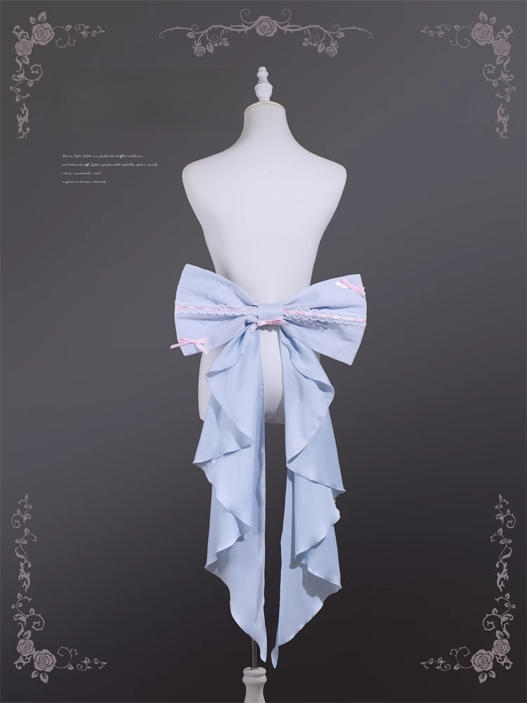 青と白のオールドスクールロリータファッションドレス 蝶結びディテール JSK セット