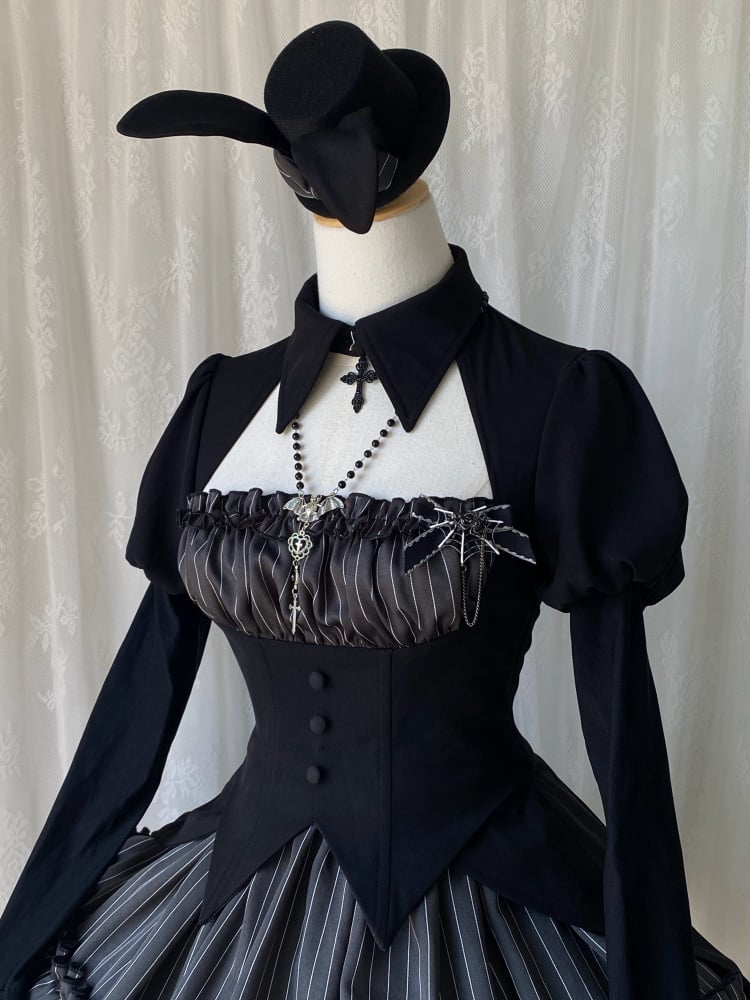 黒とグレーのフェイクツーピースボレロトップダークゴシックロリータストライプドレス