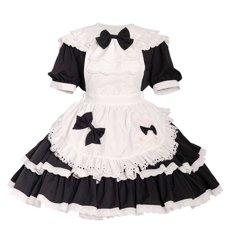 黒と白のバニーテーマのティアードフリルメイドロリータドレス