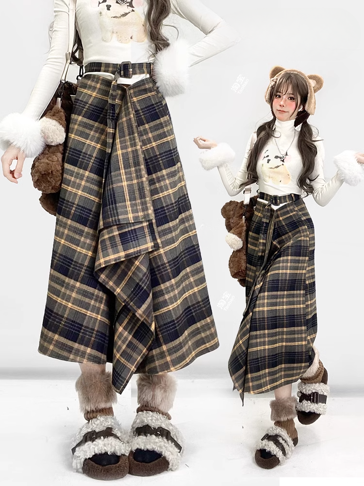 黒と黄色のチェック柄ミディ丈ヴィンテージスカート