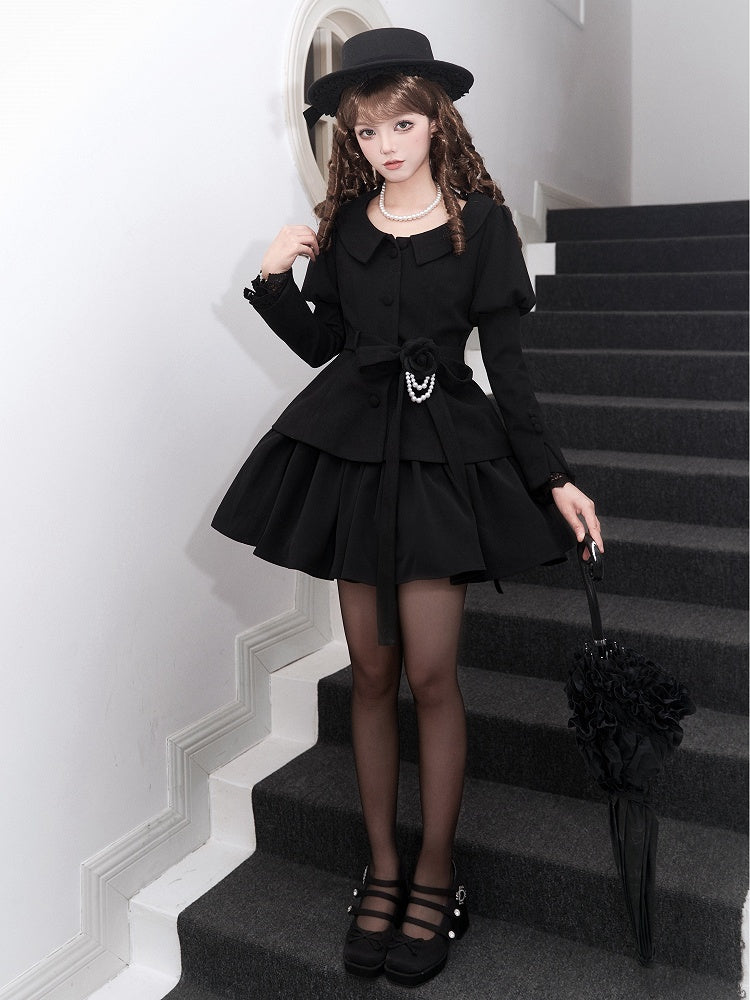 黒と白のオールドスクールロリータファッションドレス蝶結びロリータJSKセット