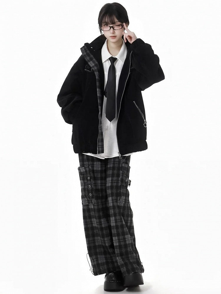 冬から春への完璧な移行期!クラシックなブラックとグレーのチェック柄パンツは、どんなコーディネートにも合わせやすく、万能なワードローブの定番アイテムです。両サイドには便利な大きなポケットが付いており、必需品の持ち運びに最適です。スタイリッシュさと機能性を兼ね備えた、マストハブアイテムです!