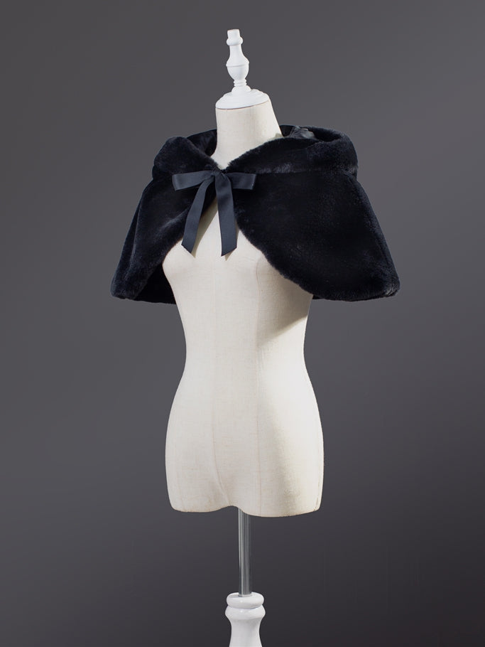 黒猫耳フード付きプラッシュケープで、心地よくキュートな装いを。猫好きの方にぴったりのこのケープは、愛らしい猫耳付きフードが特徴です。この冬は、このマストアイテムで暖かくスタイリッシュに過ごしましょう。