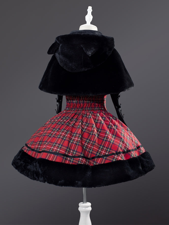 黒猫耳フード付きぬいぐるみケープ