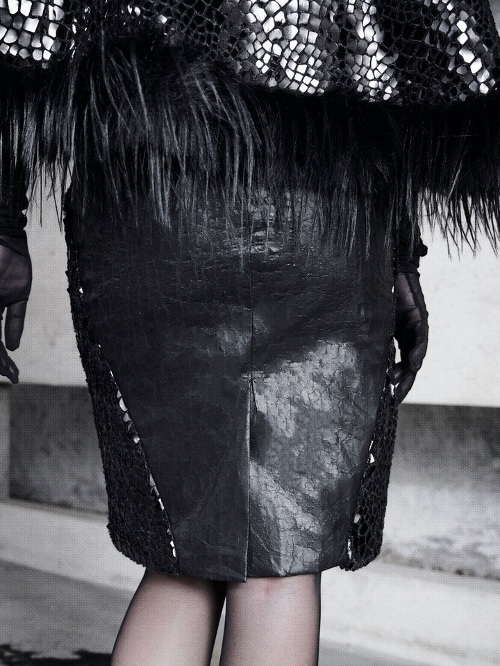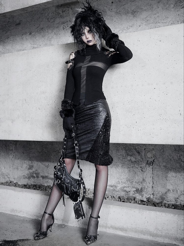 ブラックのクラックスカートで、ダークな一面を演出しませんか?モダンなゴス系オフィスレディのためにデザインされたAラインスカートは、ワードローブにエッジの効いたアクセントを添えてくれます。上質な素材を使用し、オフィスにも夜のお出かけにもぴったりです。このマストハブアイテムで、個性的なスタイルをアピールしましょう。