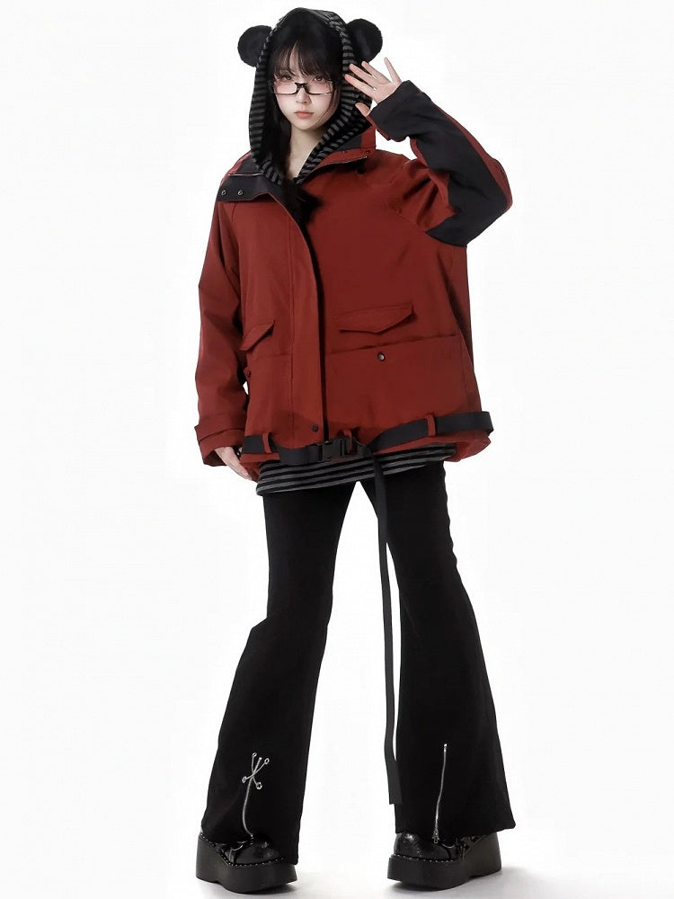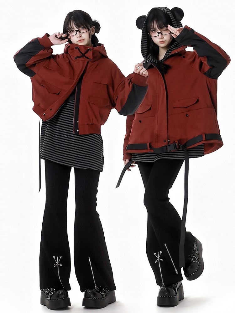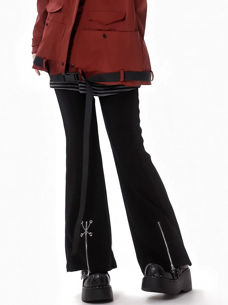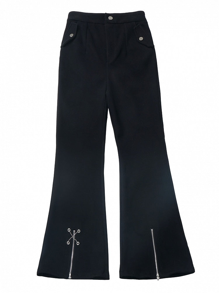 ブラック クロスチェーン ジップカフス フィッシュテールパンツ