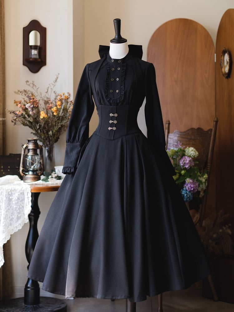 黒と白のオールドスクールロリータファッションドレス蝶結びロリータJSKセット