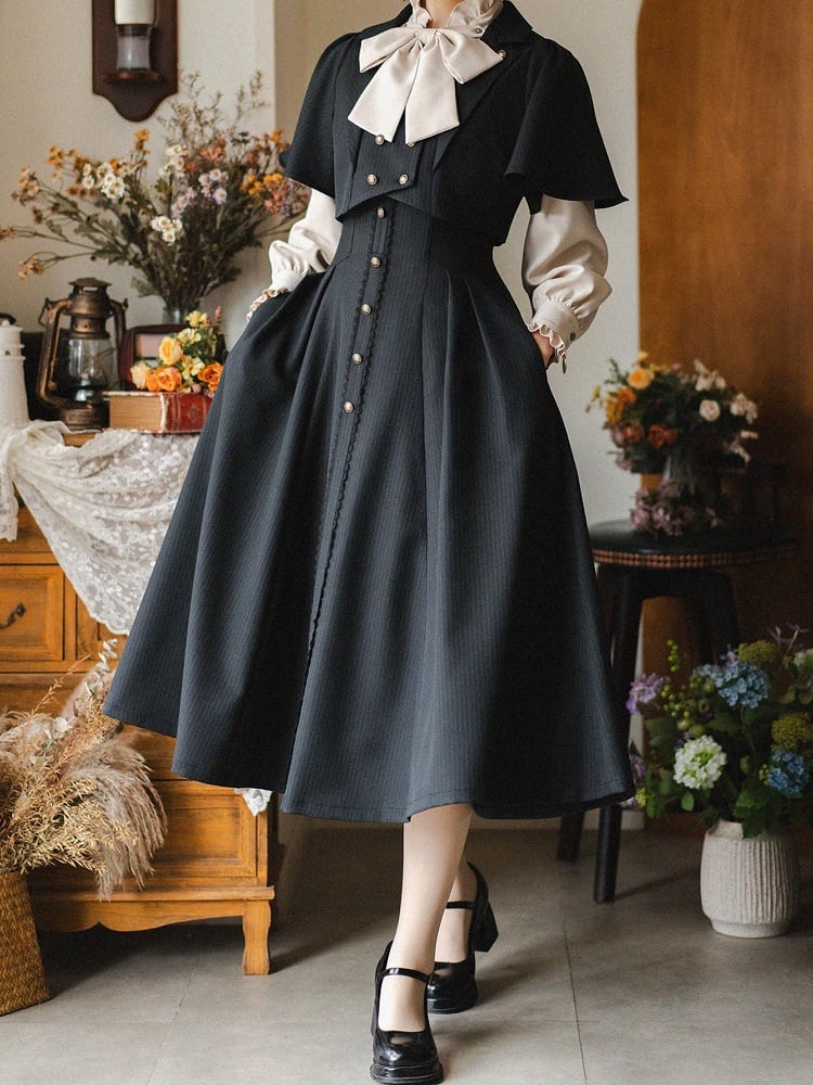 黒と白のオールドスクールロリータファッションドレス蝶結びロリータJSKセット