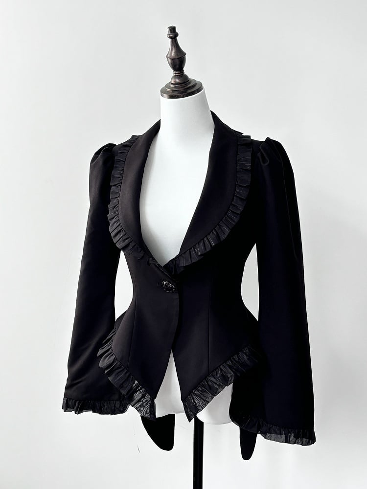 ブラックゴシックロリータ バタフライウィングブレザーで、あなたのスタイルを個性的で愛らしいものに変身させましょう。大胆なバタフライウィング型の裾がデザインされたこのブレザーは、きっとあなたを群衆から引き立てます。ファッショナブルでシックな装いを保ちながら、あなたの内なるキュートな一面を引き出しましょう。