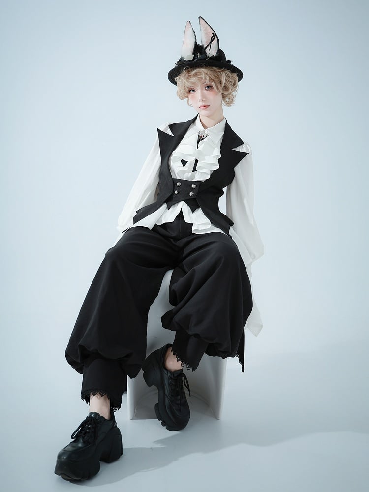 ブラックゴシック王子ロリータホルターネックブレザーカラーウエストコート