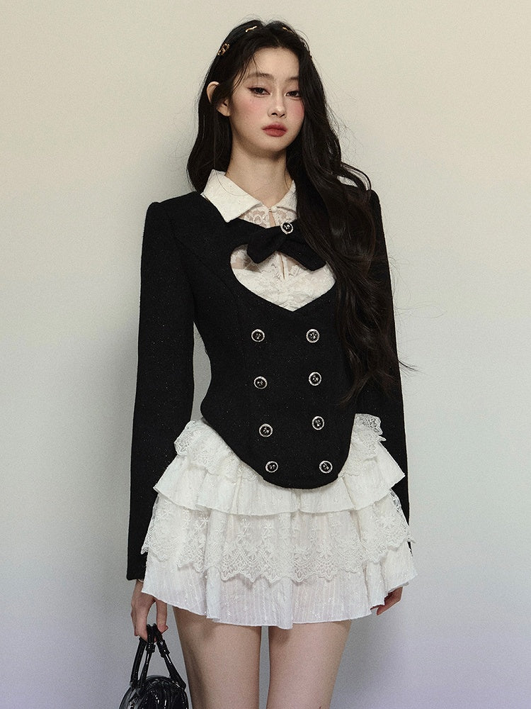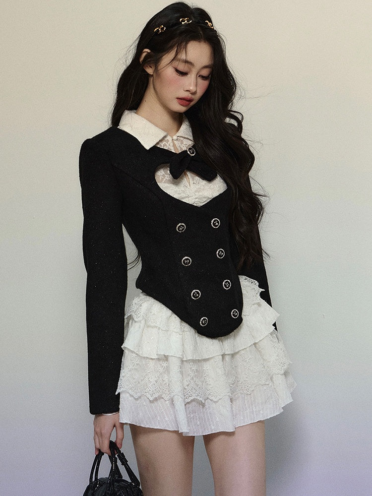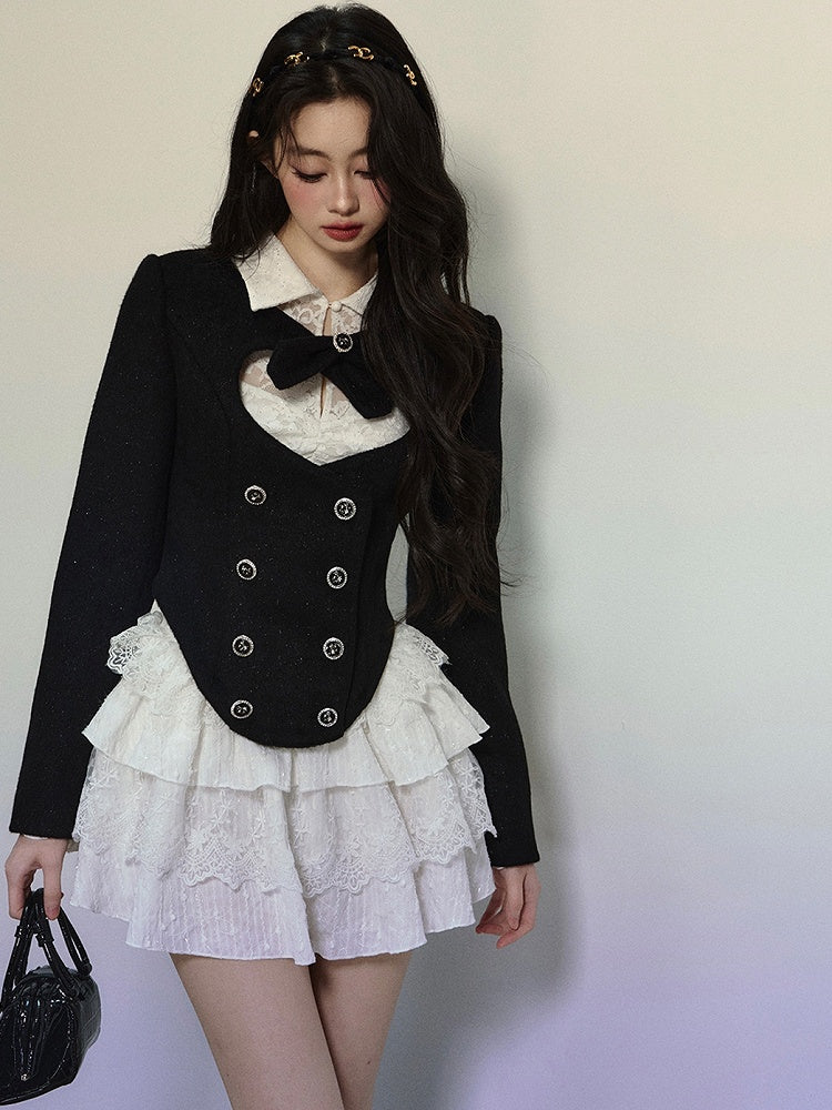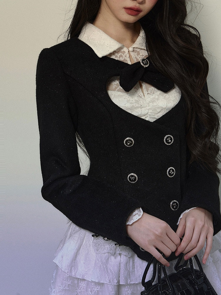 ブラックハート型カットアウトクロップドウールジャケット