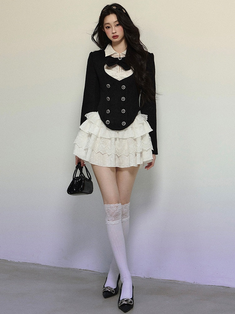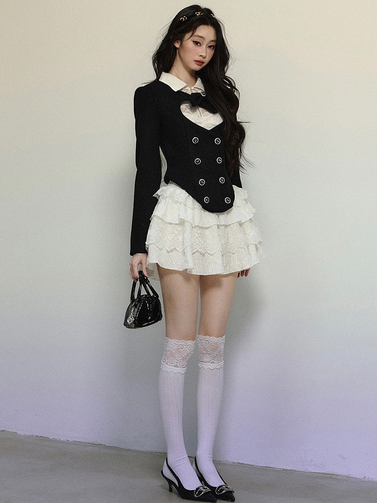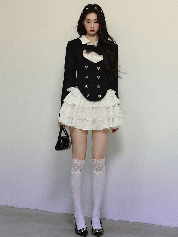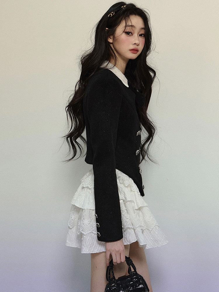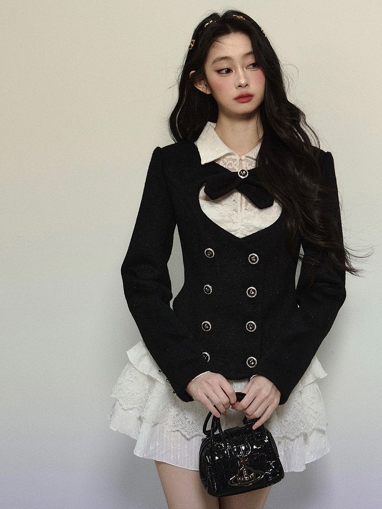 ブラックハート型カットアウトクロップドウールジャケット