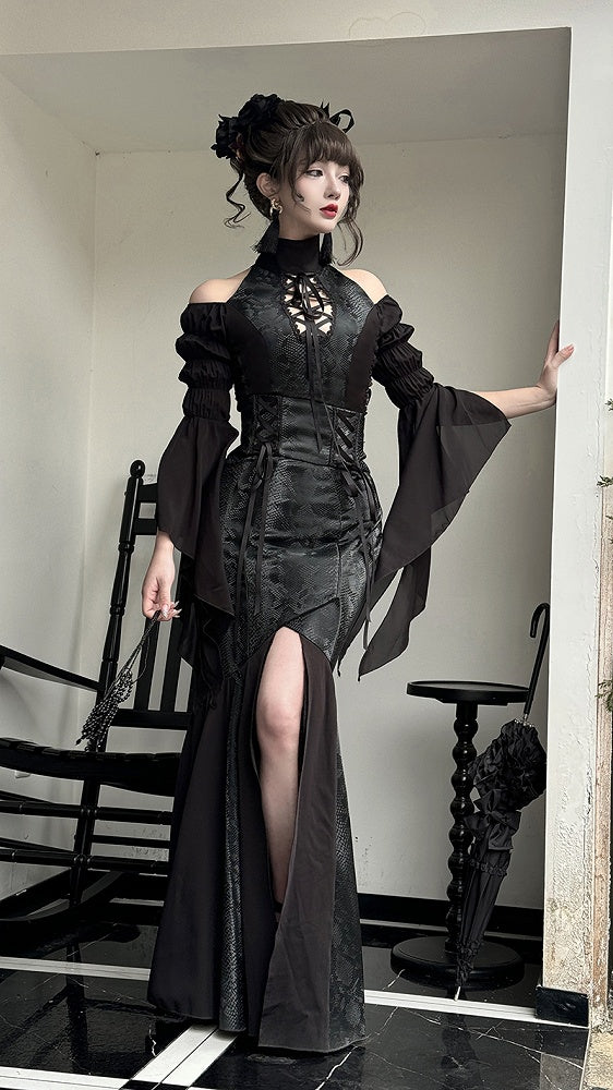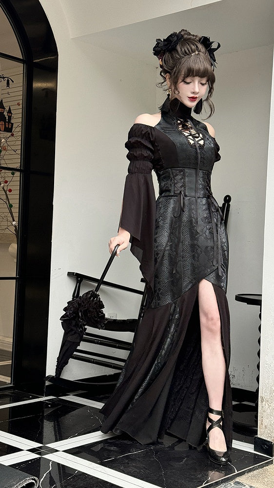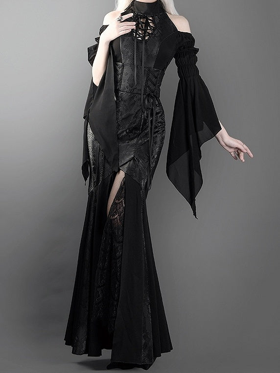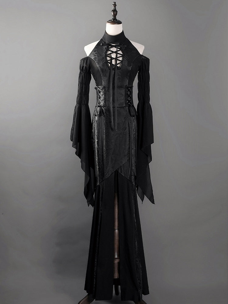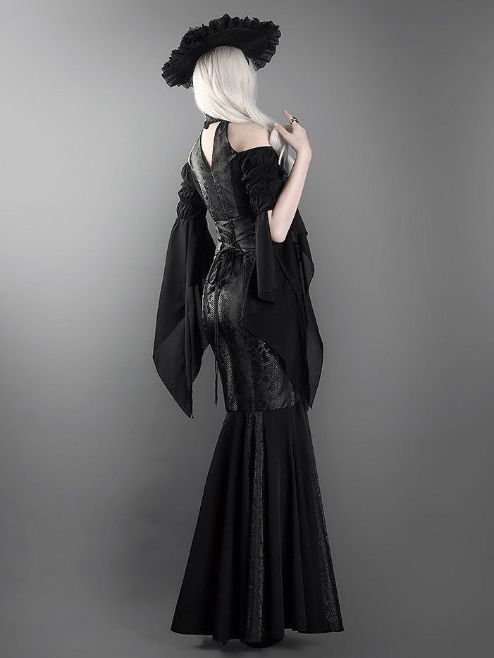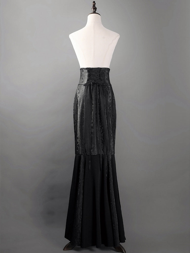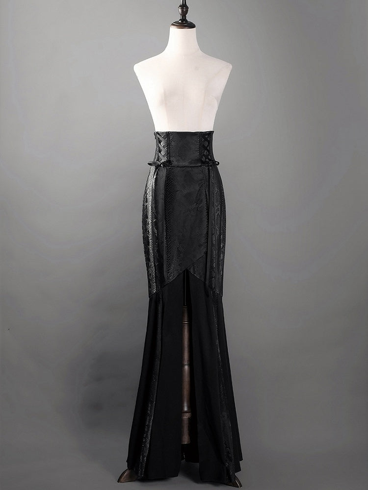 ブラックハイウエストスネークスキングレインゴシックロリータマーメイドスカート