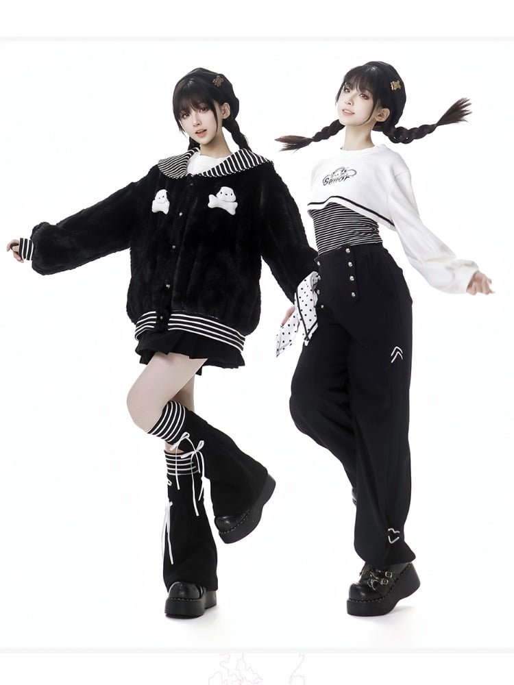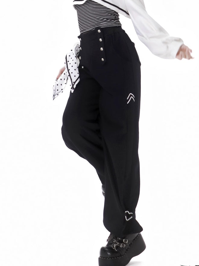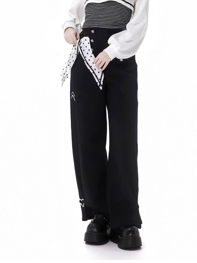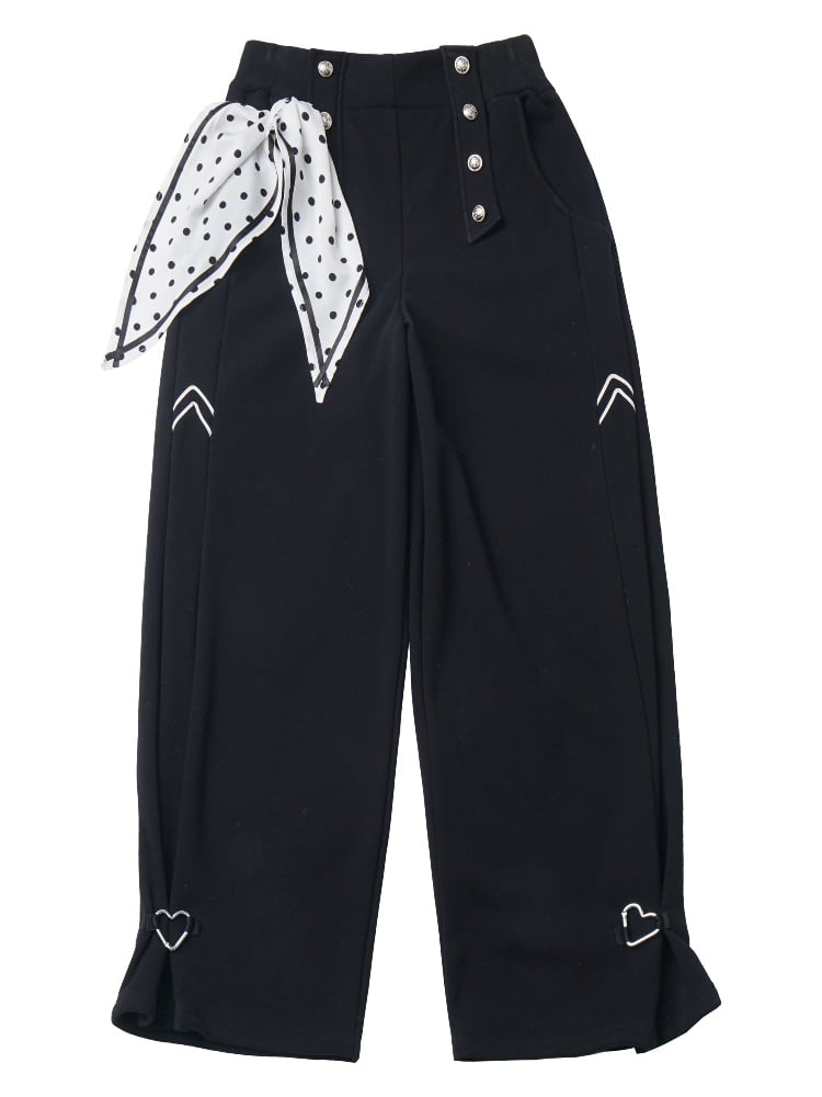 ブラック ポルカドット リボン スウェットパンツ