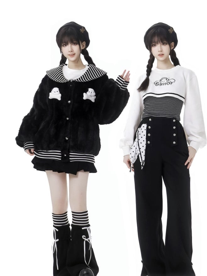 黒と白のオールドスクールロリータファッションドレス蝶結びロリータJSKセット