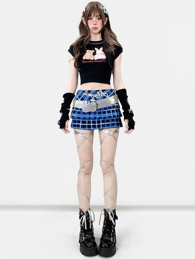 ブラックプリント文字とY2KバニーベアTシャツ