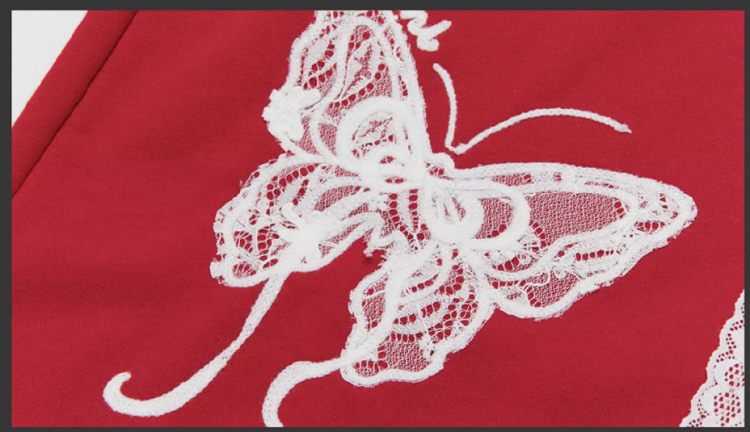 ブラック/レッドのレースバタフライストレートレッグカットパンツは、レーストリムが美しく、着回し力抜群。繊細なレーストリムがロマンチックな雰囲気を添え、ストレートレッグカットが美しいシルエットを演出します。どんなシーンにもぴったりで、すぐにワードローブの定番アイテムとなるでしょう。