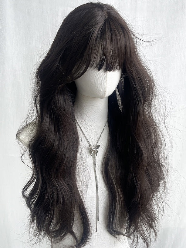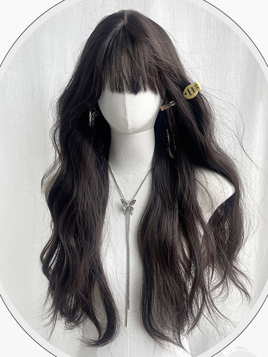 ブラックティーロングウェーブウィッグ(エアバング付き)