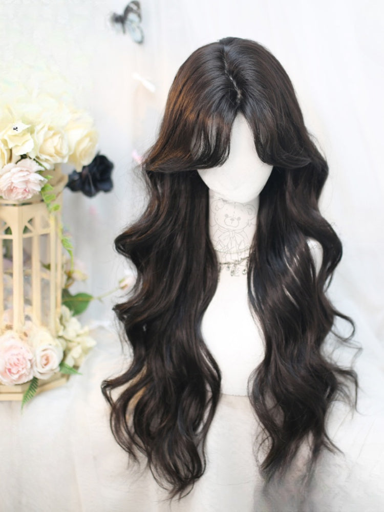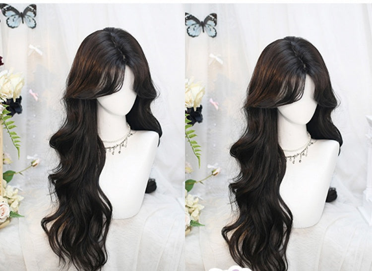 ブラックティーのアンダーバスト丈ウェーブウィッグ(カーテンバング付き)