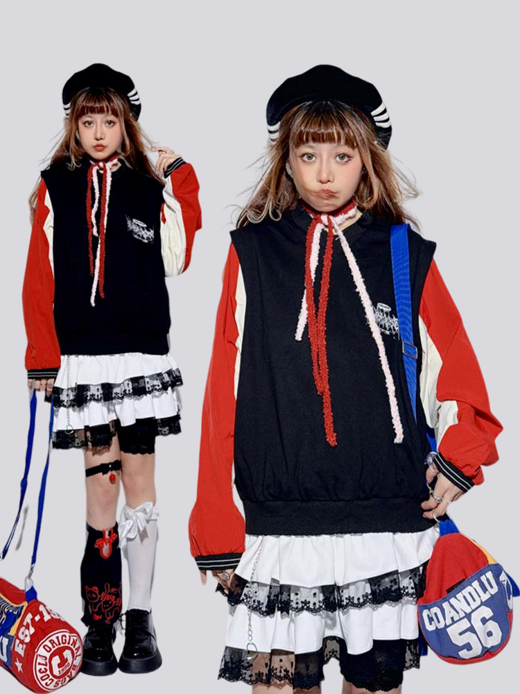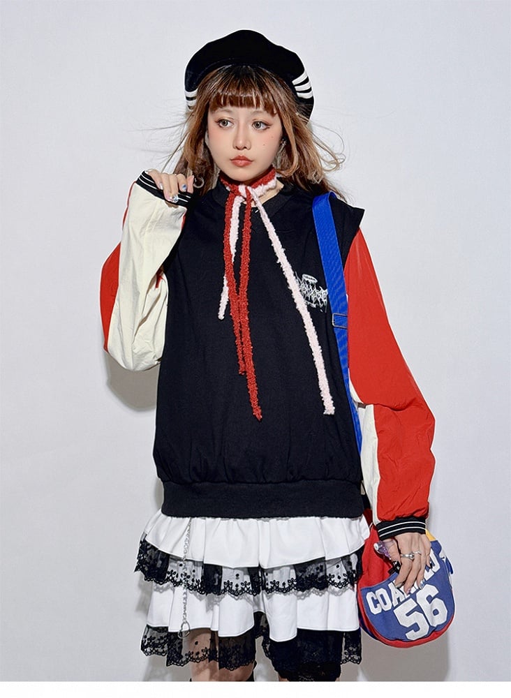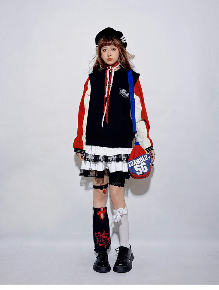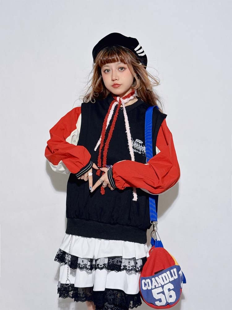 この愛らしいブラックのVネックパンク風ルーズノースリーブベストは、ユニークでエッジの効いたスタイルです。Vネックのデザインとゆったりとしたフィット感で、どんなワードローブにも合わせやすく、着心地も抜群です。パンクな雰囲気を漂わせながら、人混みの中でもひときわ目を引く一枚です。