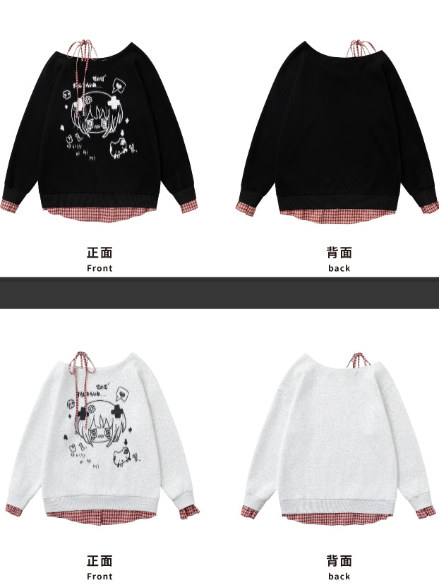 個性的な白黒のアシンメトリーネックラインとチェック柄の袖口が特徴の、Yami Kawaiiトップス。コーディネートに可愛らしさをプラスします。スタイリッシュなデザインは、個性を表現したい方にぴったりです。