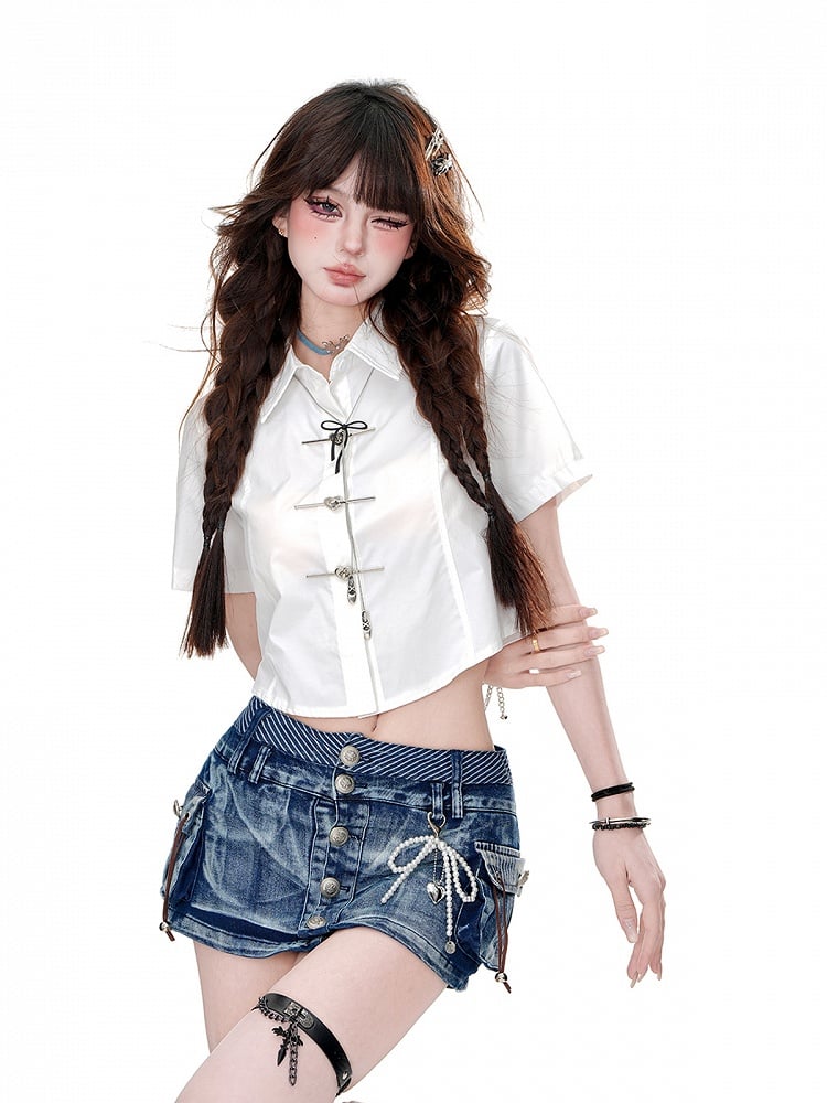 ブラック/ホワイトのカットアウトバックが魅力的なクロップドトップスは、ユニークなカットアウトバックデザインと大きなリボンが特徴で、装いに魅力と遊び心をプラスします。人と差をつけたい、個性を主張したいあなたにぴったりです。