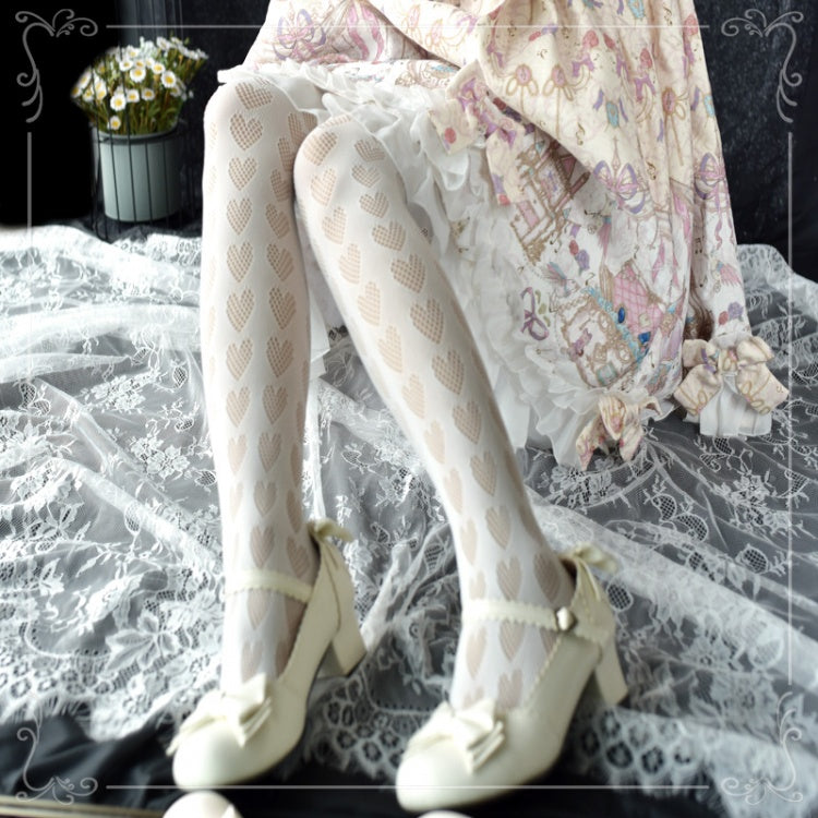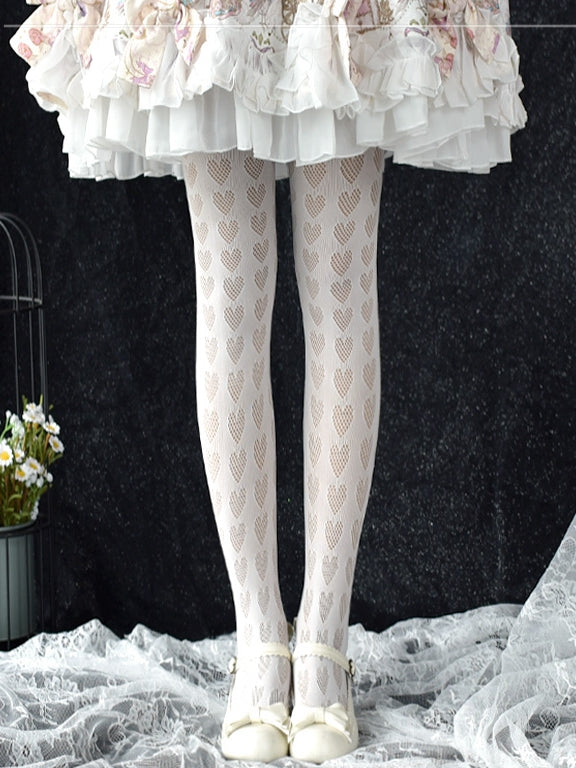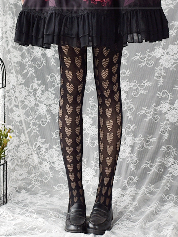 ブラック/ホワイトハート柄タイツ