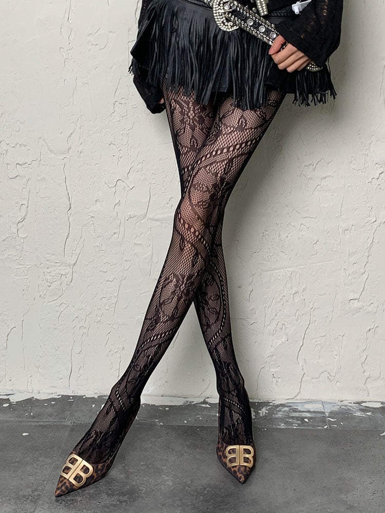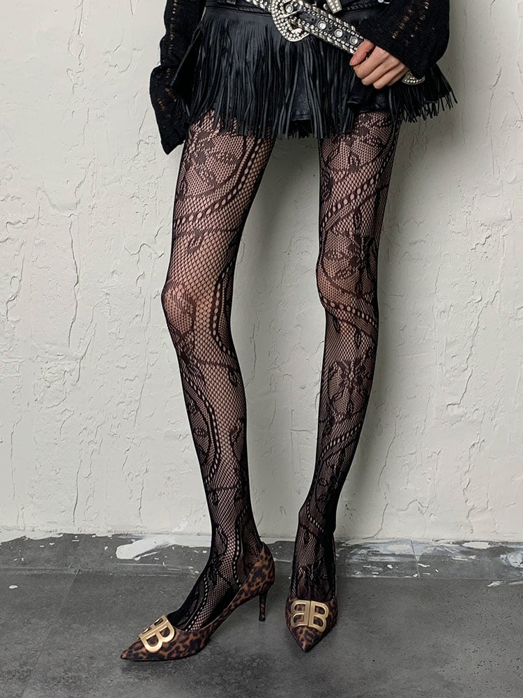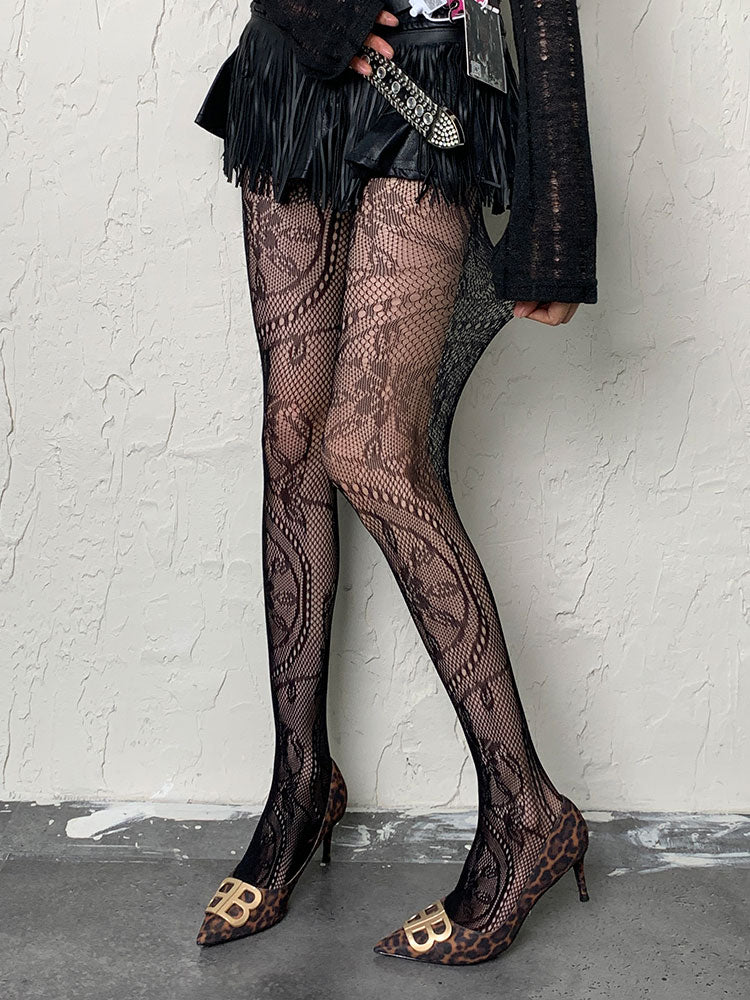 ブラック Y2K 花柄 網タイツ