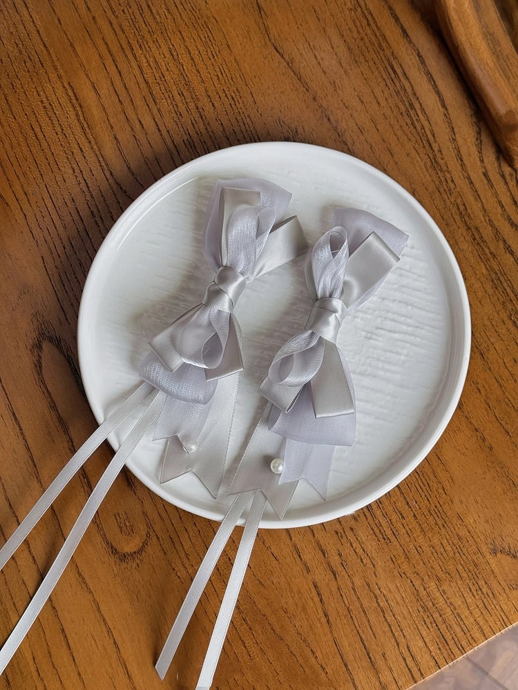 シャンパン / シルバー / ブラック&ゴールド 蝶結びヘアクリップ