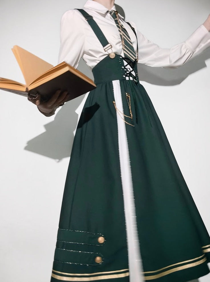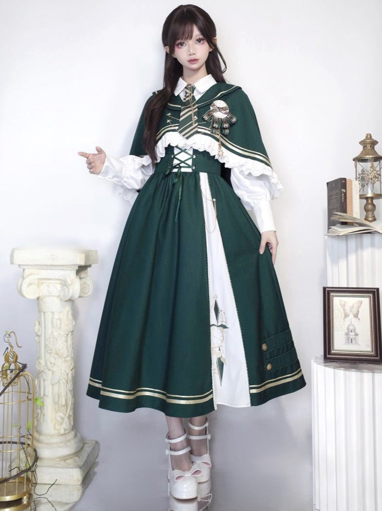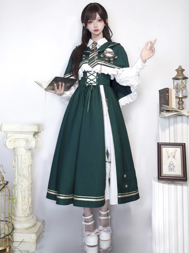 青と白のオールドスクールロリータファッションドレス 蝶結びディテール JSK セット