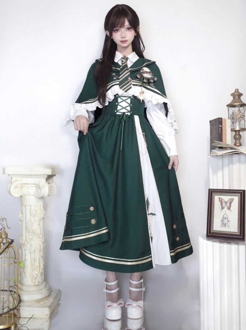 ブラウス トラベラースカート 新作 + ショートケープ フレアタイム レースアップ