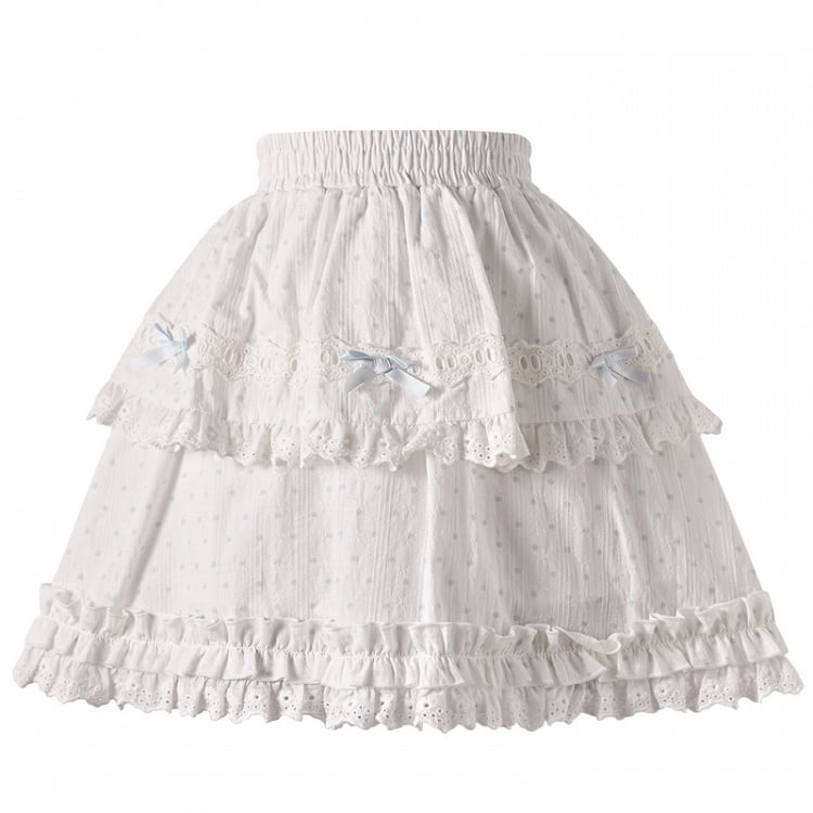 ブルー/ピンクの水玉模様と蝶結びのフリルレーストリムが可愛らしいティアードスカート。どんな装いにもキュートなアクセントを添えてくれます。遊び心のある水玉模様と繊細なレーストリムが、きっと注目を集めること間違いなし。ティアードデザインが遊び心のあるふわふわ感をプラスし、蝶結びのアクセントが甘さをプラス。この素敵なスカートで、ワードローブに魅力をプラスしてみませんか。