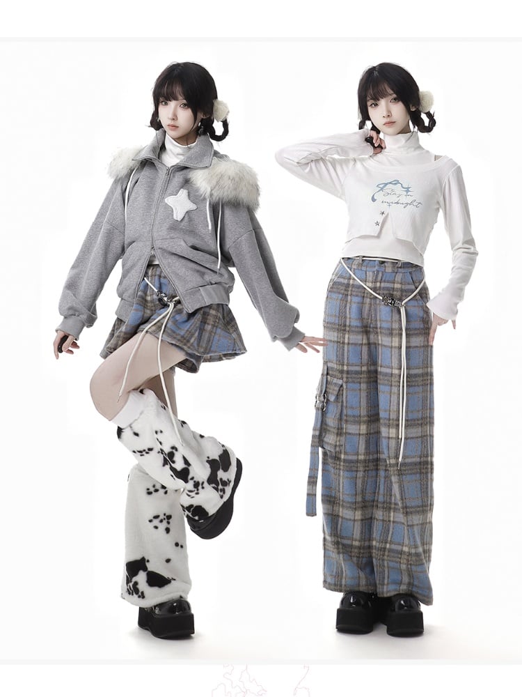 カーゴポケット付きのブルーチェック柄パンツは、スタイリッシュで実用的。キュートなブルーのチェック柄がアクセントになり、カーゴポケットには必需品をたっぷり収納できます。