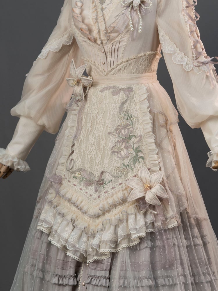 チャーミングなブルー/パープル/グレーのリリー柄エプロンが登場!この素敵なエプロンは、可愛らしさだけでなく実用性も抜群です。鮮やかなカラーと丈夫な素材で、お料理やベーキングの際にお洋服をしっかり守ります。キッチンにキュートな雰囲気をプラスして、素敵な時間を過ごしてみませんか?