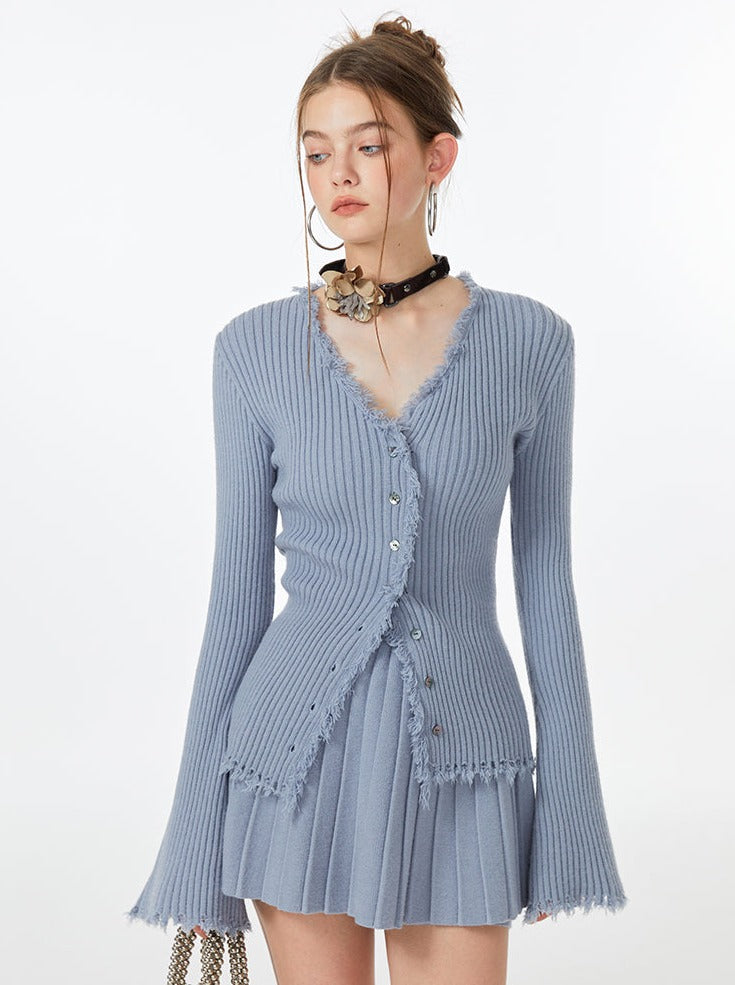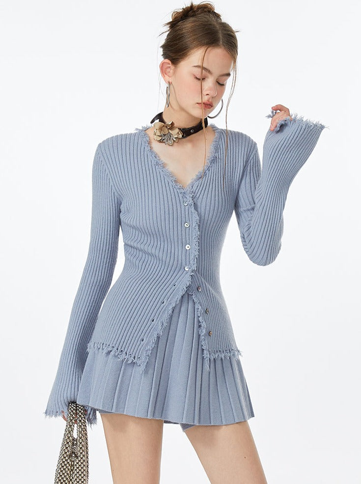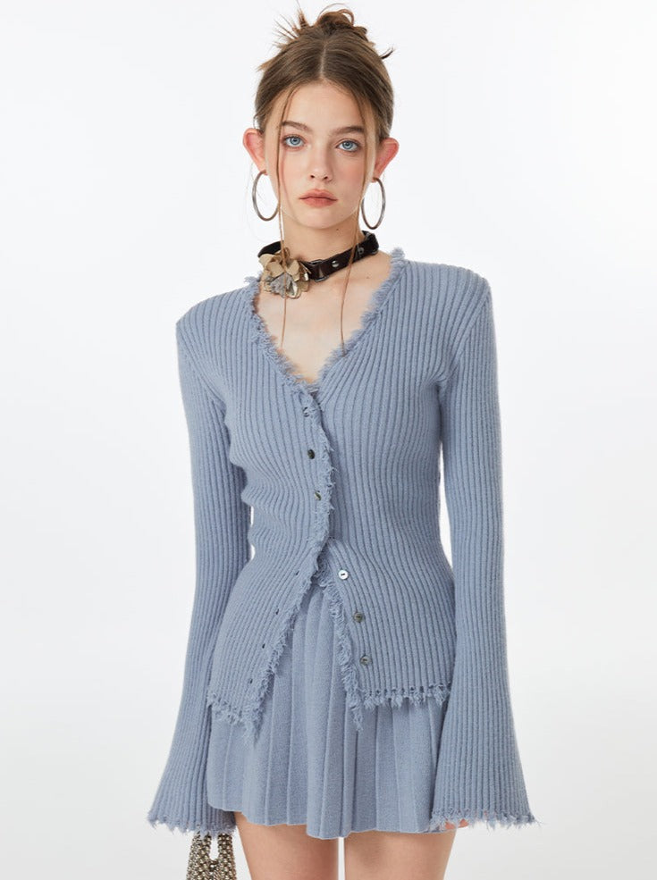 この愛らしいブルーのスカートリブカーディガンは、体型を美しく見せるフレアデザインとスタイリッシュなアイストップが特徴です。リブ素材で仕立てられたこのカーディガンは、快適なフィット感と美しいボディラインを演出します。ワードローブに欠かせないこのアイテムで、シックで快適な着心地をキープしましょう。