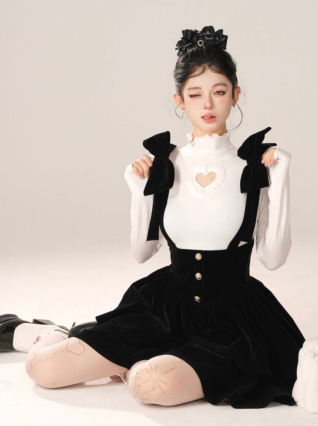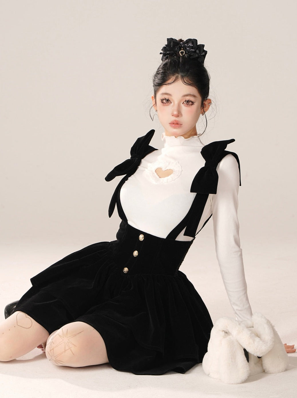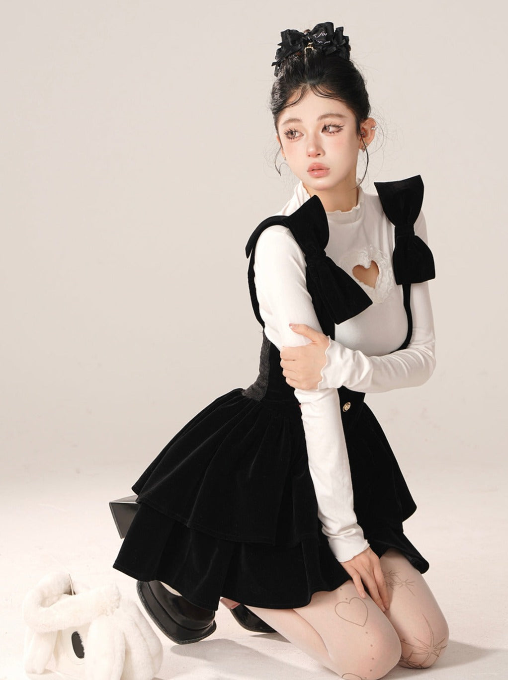 黒と白のオールドスクールロリータファッションドレス蝶結びロリータJSKセット