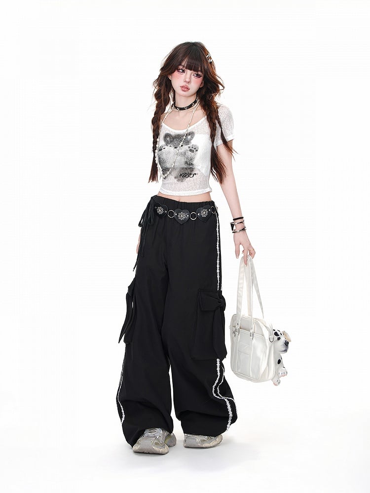 ブラウン/ホワイトのセミシアー素材で、可愛らしい子犬のグラマラスなクロップドTシャツを着て、キュートな装いを演出しましょう。遊び心のあるキュートな子犬のデザインが、セミシアー素材で華やかな印象を与えます。どんな装いにも甘さをプラスしてくれる、まさに理想の一枚です。