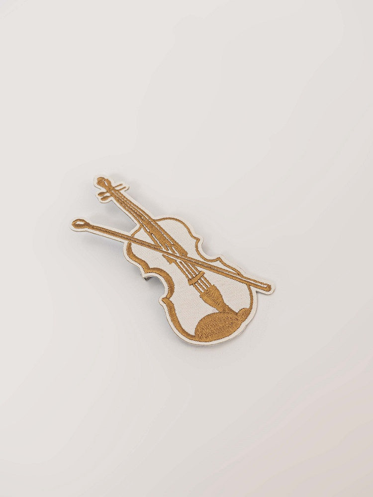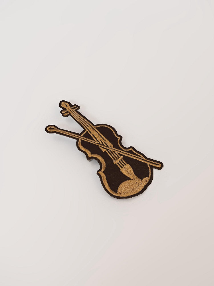 ブラウン/ホワイトのバイオリン刺繍ブローチ