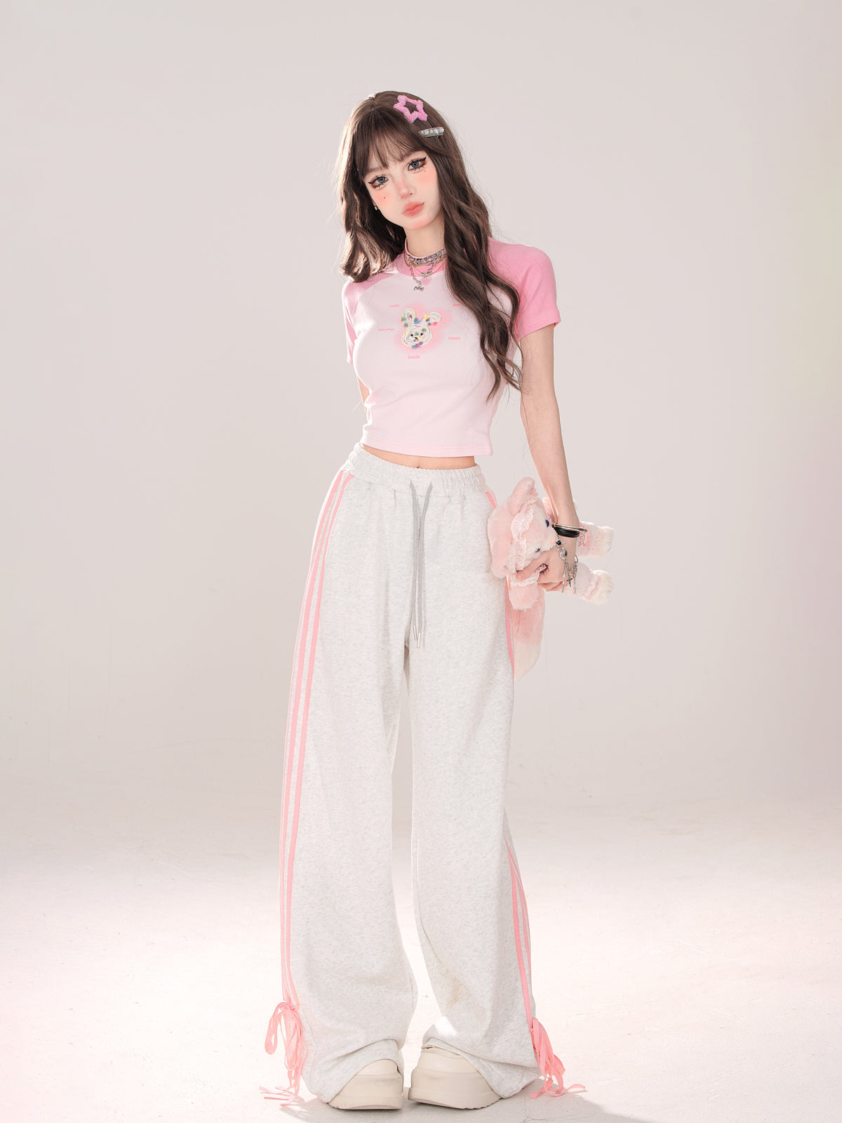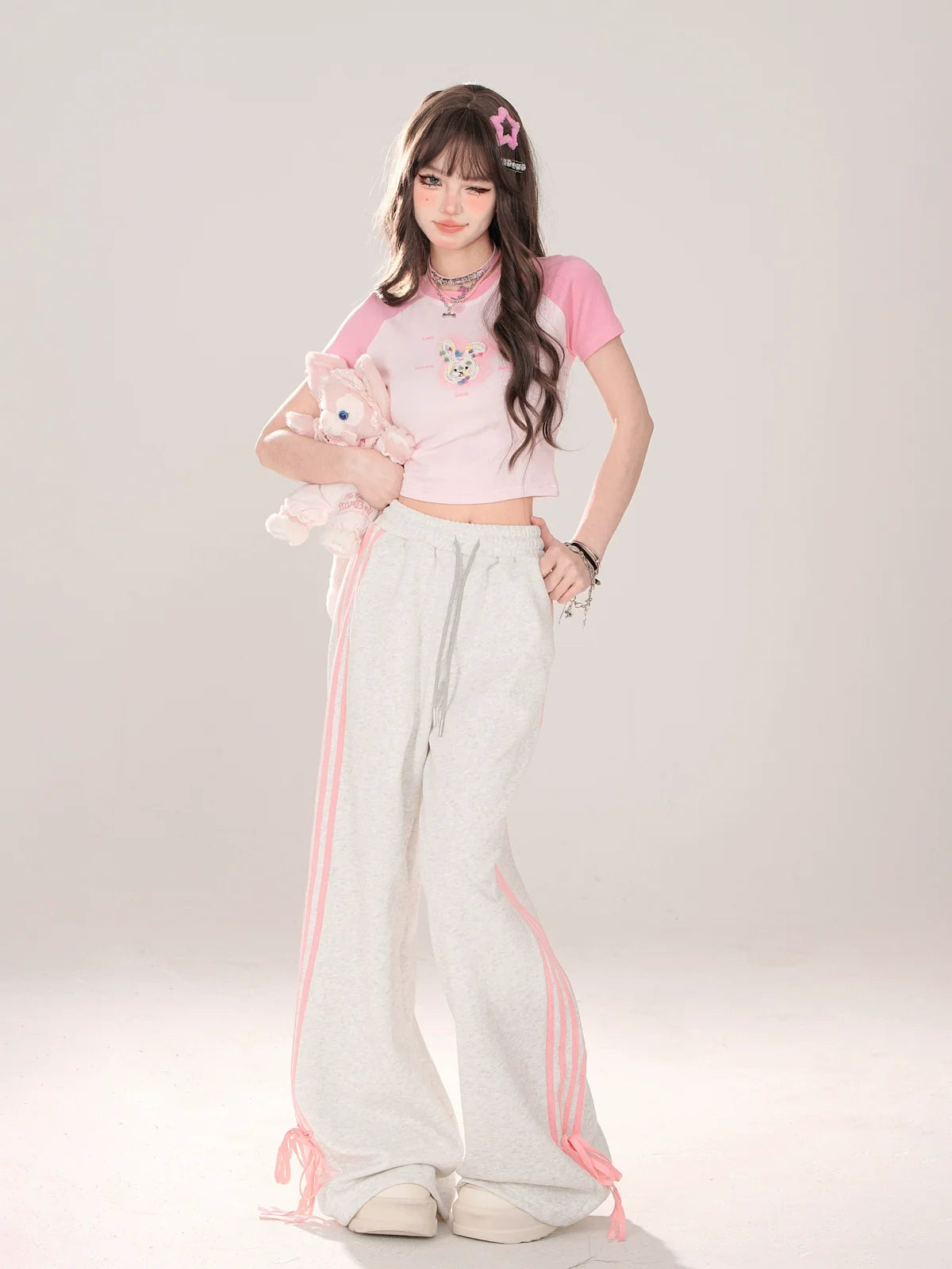 ピンクと白のオールドスクールロリータファッションドレス、蝶結びディテール、ロリータJSKセット