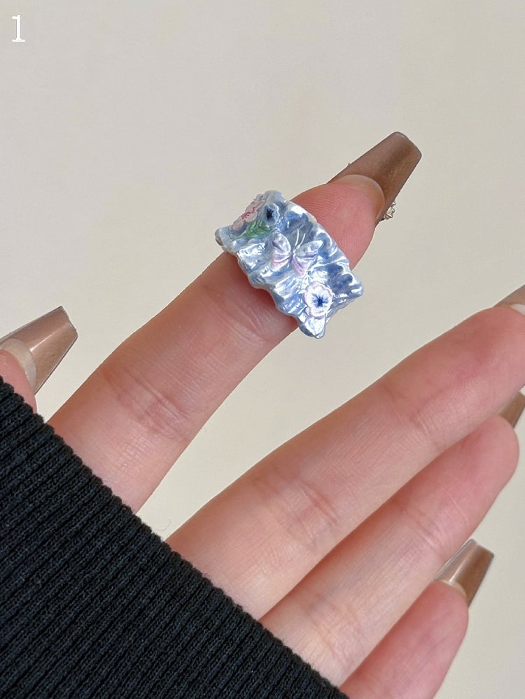 バタフライデザインリング フローラル 8 Y2K ビタースウィートブルーとオプション