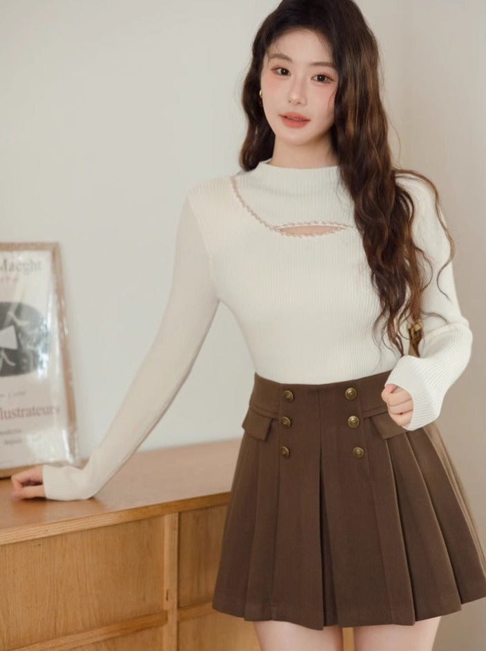 ワードローブにキュートなアクセントをプラスする、ゴールドボタンプリーツインナースカートパンツ。個性的なゴールドプリーツデザインが、どんなコーディネートもワンランクアップ。毎日の装いに華やかさをプラスするのにぴったりです。今すぐお求めいただけます!