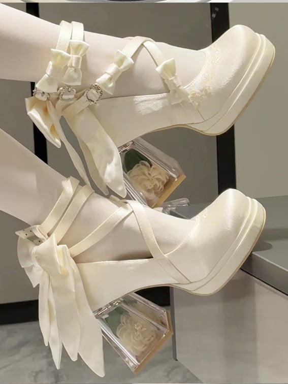 カメリア プラットフォームヒール ハイヒール エレガント ホワイト ブロックフラワー
