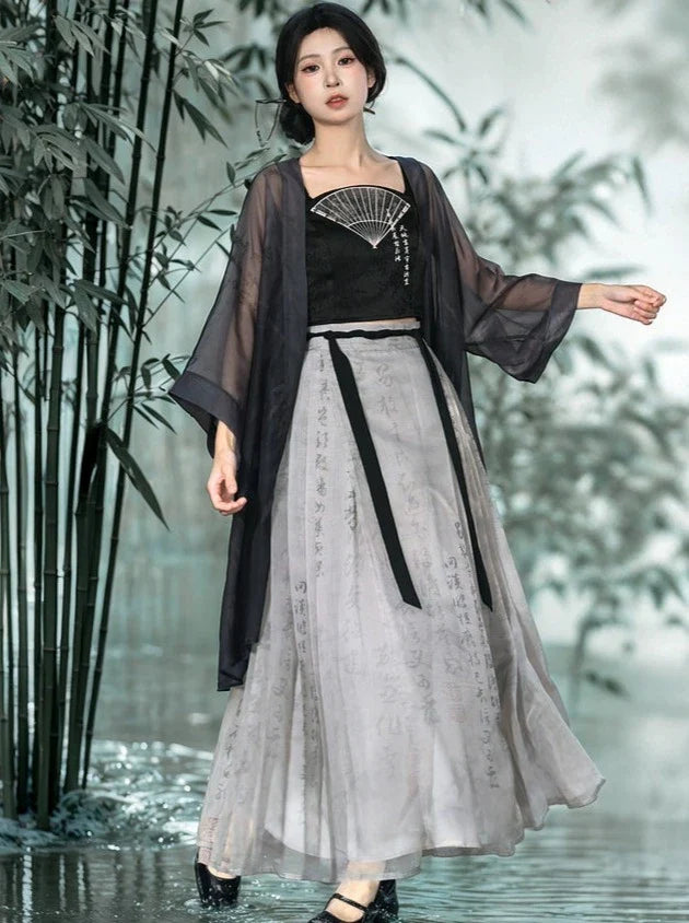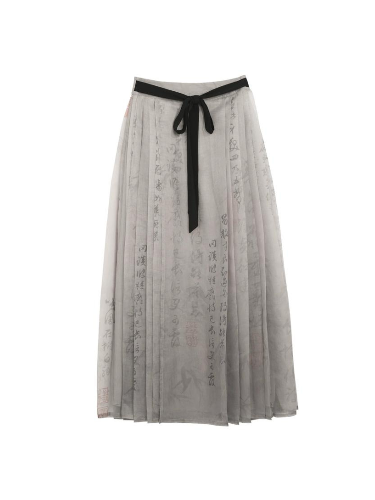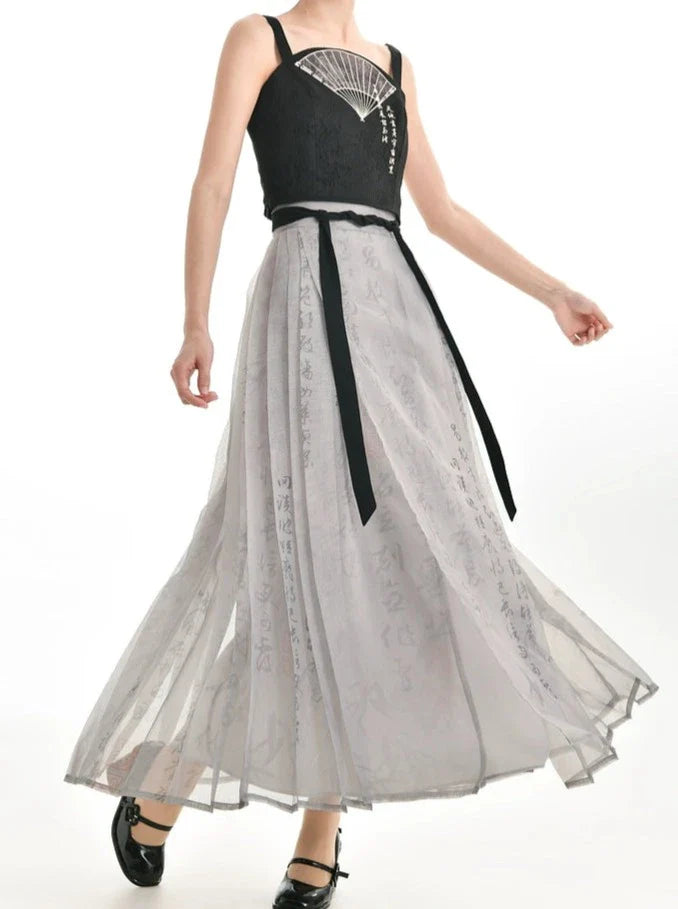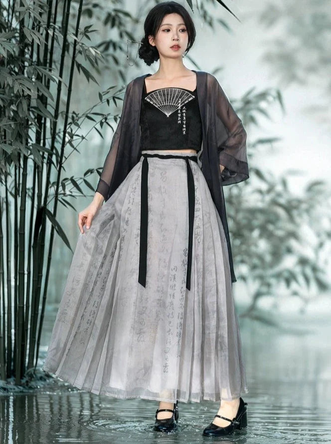キャミソールカーディガン ショート丈ロングスカート ダークプリーツチャイナ