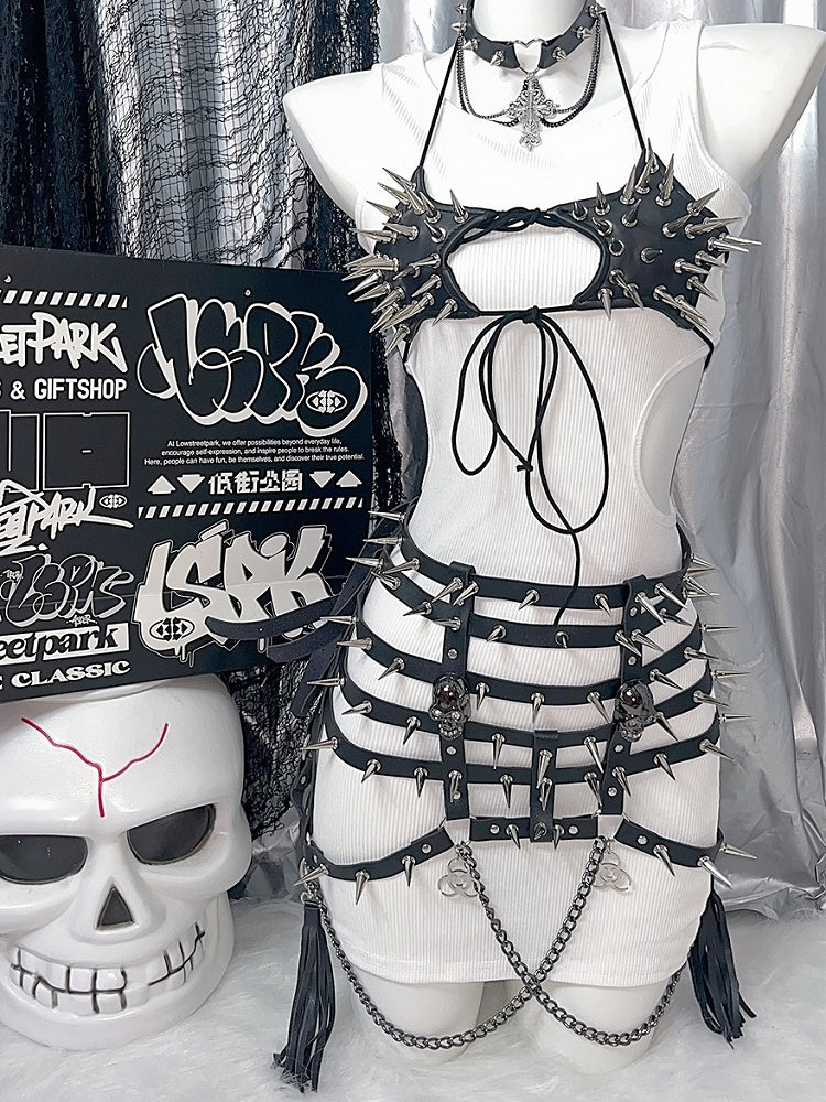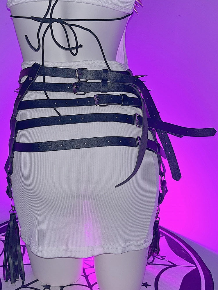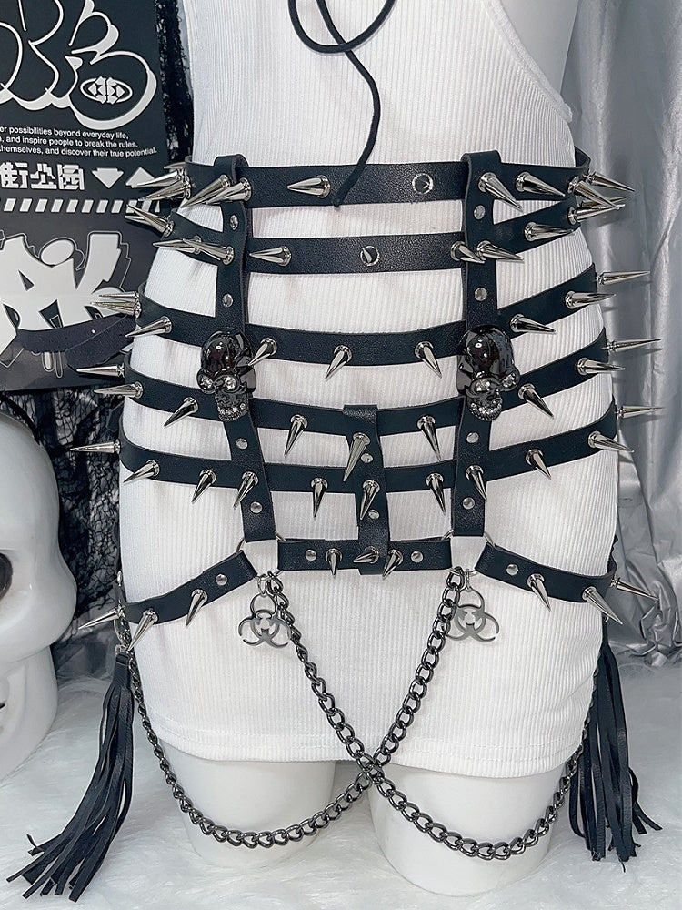 チャームタッセルウエスト&ベルトスタッドブラックスケルトンY2K装飾
