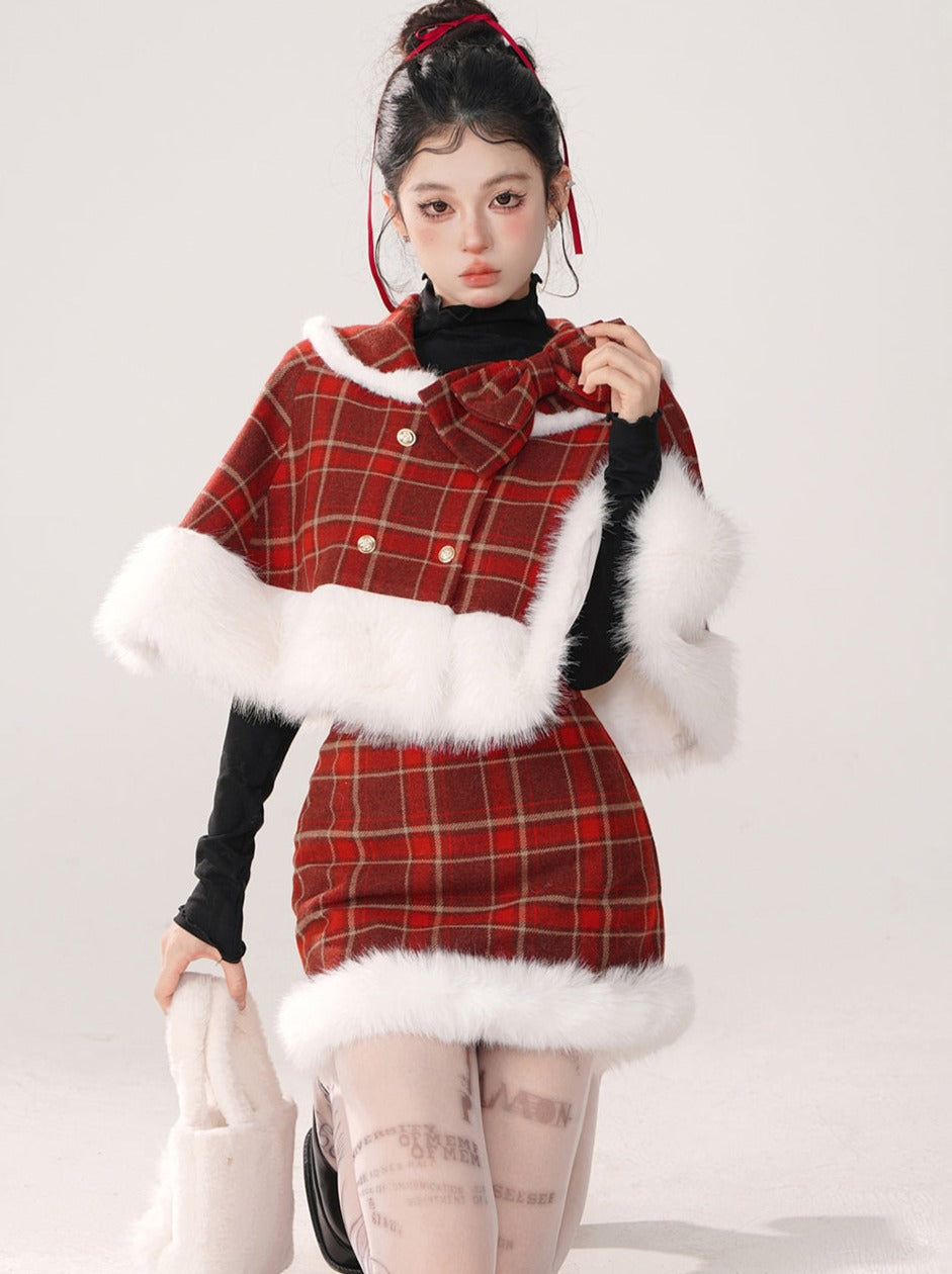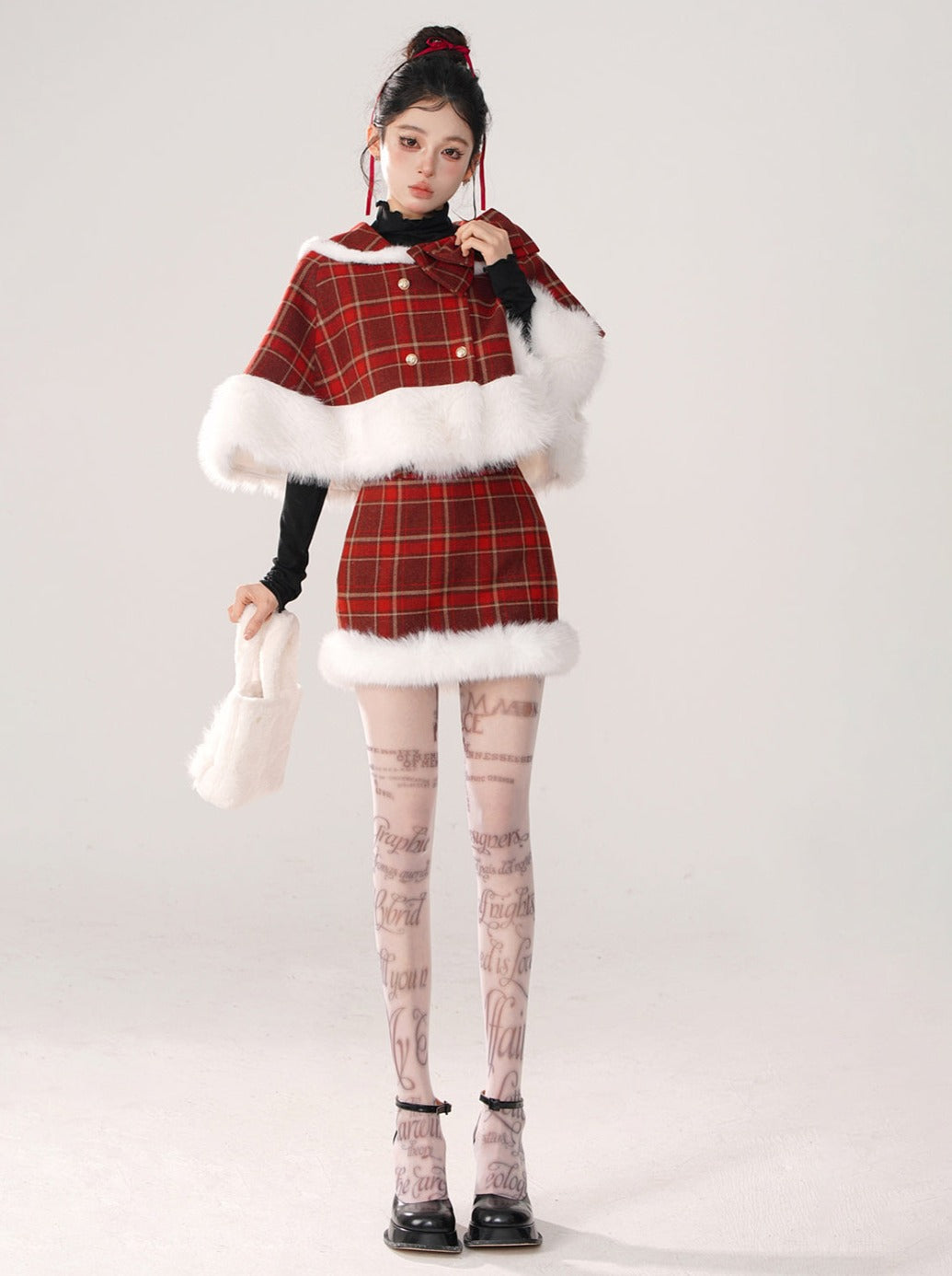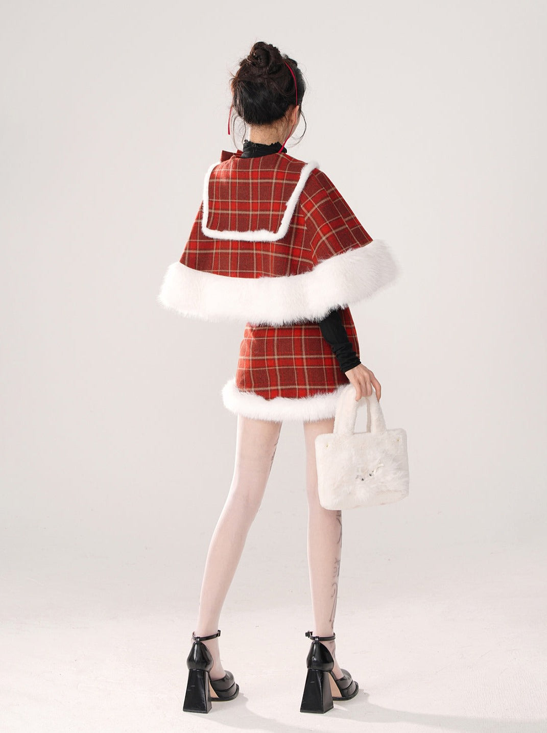 キュートで着心地抜群のチェックファーマントとチェックスカートのセットで、スタイリッシュに過ごしましょう!どんなシーンにもぴったりの、チェック柄のファーマントとスカートが可愛いこのセットは、おしゃれでありながら暖かさもキープ。この魅力的な一着をお見逃しなく!